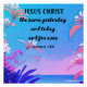 Esta bela ilustração tropical mostra o verso hebraico 13:8. Diz "Jesus Cristo o mesmo, ontem, hoje, e para sempre. O texto pode ser personalizado. As cores são azul-céu, rosa, branco e roxo.