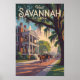 Savannah retro vetor viagem design. Savannah, Geórgia, é uma cidade histórica do sul conhecida pelas suas ruas de carvalho, arquitetura de tamanduá e charme costeiro.