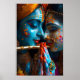 Uma representação impressionante de Radha e Krishna num ambiente sereno e pastoral, rodeado por uma flora e fauna vibrantes. Krishna, tocando sua flauta encantadora, irradia calma, enquanto Radha, com sua graciosa expressão, encarna devoção e amor