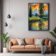 Pôster Impressionismo da paisagem vibrante com reflexo so