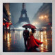 Impressionismo França Torre Eiffel e boulevard com casal na chuva com guarda-chuva