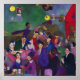 Visão impressionista de um bar lotado. Vários tamanhos disponíveis. Um grupo pessoas em um bar é capturado nesta imagem. As paredes do bar são pintadas de vermelho com acentos verdes, e um círculo amarelo brilhante com um centro marrom escuro está no primeiro plano. Na parede extrema esquerda do bar pendura uma pintura de um homem e de uma mulher, enquanto na extrema direita está uma pintura de uma mulher em roxo. As pessoas do bar estão falando e rindo, criando uma atmosfera quente e convidativa.
