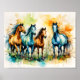 This image shows a herd of colorful horses in the pasture, blending whimsical drawing and abstract art elements in a palette of complementary colors.