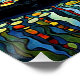 A.I.assistiu impressão de um homem em um casaco vermelho se posiciona em um caminho refletido em um corpo de água enfeitado com pedras coloridas, cercado por uma cena surreal de videiras vibrantes penduradas e folhas circulares, sentindo-se indesejado por outros no seu mundo.