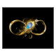 Símbolo Dourado e brilhante do infinito, decorado com pena de joalharia de pavão com turquesa sobre fundo preto.
