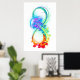 Símbolo multicolorido infinito com águas-vivas brilhantes do arco-íris decoradas com tentáculos longos em fundo branco. Água-viva arco-íris.
