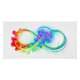 Símbolo multicolorido infinito com águas-vivas brilhantes do arco-íris decoradas com tentáculos longos em fundo branco. Água-viva arco-íris.