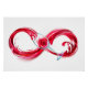 Símbolo infinito do fluxo contínuo de vinho tinto que entra em vidro de vidro sobre fundo branco.