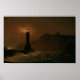 Um farol excelente queima fortemente contra a escuridão da noite, chamas pulando no céu e refletindo sobre a água abaixo. Os barcos correm em direção ao céu como figuras no relógio de terra em horror e admiração. A fumaça se curva através das estrelas, e o oceano brilha com a estranha luz do desastre.