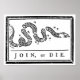 A impressão do "Join or Die" foi um desenho político criado por Benjamin Franklin. A cobra mostrada é separada em segmentos, assim como as colônias originais foram divididas. O desenho foi usado para unir as colônias para lutar contra os britânicos. Celebrar a História Americana com este poster vintage restaurado digitalmente da Guerra é a Loja do Inferno. Quer mais produtos militares e históricos? Check-out