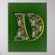 Letra monográfica D preenchida com poster de flor de margarida digitalmente alterada.