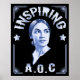Retrato de Alexandria Ocasio Cortez a azul, com texto "Inspiring AOC". T-shirts, suores, artigos de presente de novidade.