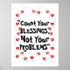 Motivational conte suas bênçãos citando arte de parede. Bênçãos inspiracionais citam poster com borda vermelha de corações.