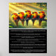 Desiderata Poem Animal Poster uma fotografia vibrante e colorida que mostra uma linha de quatro papagaios de conure solar tocados de perto em um galho natural. Os papagaios devem exibir sua plumagem impressionante, apresentando corpos laranja brilhantes com sotaques amarelos e verdes em suas asas. O fundo deve ser uma selva luxuosa, suavemente desfocada, para enfatizar as cores vivas das aves. A iluminação deve ser brilhante e natural, realçando a textura das penas dos papagaios. A composição deve ser centrada em torno das aves, capturando seu caráter lúdico e social, enquanto garante que o foco permanece em seus detalhes e expressões vibrantes. Inclua uma citação inspiradora com tipografia elegante na parte inferior ou superior da imagem, colocada contra um fundo contrastante para garantir a legibilidade. A citação deve evocar temas de paz, positividade, e a beleza da natureza, complementando a vibração geral e alegre da fotografia