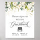 Rosas Brancas Floral Instantâneo Álbum de Convidados Sinal de Casamento Cartaz.