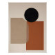 Uma composição minimalista que explora a harmonia entre formas geométricas e tons terrosos. A sutil interseção do círculo preto com retângulos translúcidos sugere equilíbrio, contraste e introspecção dentro de um espaço visual tranquilo.
