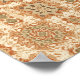 A complex, repeating ethnic pattern with a handcrafted, textile-like appearance. The design features intricate tribal and ornate floral motifs arranged in a symmetrical tile. The color palette is dominated by warm, earthy tones, including terracotta orange, muted olive green, shades of taupe and brown, set against a cream or off-white background. The style is strongly Bohemian and vintage, suitable for textiles, fashion accessories like sandals, or wallpaper.