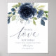 Spread Love Not Germs Sanitizer Sinal de Casamentos e Eventos - Mostra este lindo cartaz de casamento na sua estação de sanitizer manual ou exibição de máscara. Apresenta um belo buquê floral de aquarela, em azul marinho, com pistas de folhagem dourada. É perfeito para casamentos outono, chás de panela ou qualquer evento. (Você pode clicar em "personalizar mais" para alterar a cor do texto).