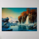Pintura da paisagem petrolífera ao estilo de Roger Dean de um parque imaginário no inverno com penhascos e cachoeiras. Feito com algoritmos generativos e Photoshop. Este é outro design de 100% original de Hamster de Combate.