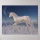 unicórnio branco em uma paisagem de inverno lua, ilustração em 3d digitalmente renderizada