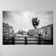 Atleta Parkour Freerunning faz um backflip na ponte em Veneza com a cidade ao fundo