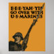 Este poster da Primeira Guerra Mundial apresenta um soldado batalhando com seu rifle. Diz: "E-E-E-YAH-YIP VÁ COM MARINHAS". Celebrar a História da Marinha e da WW1 com este produto de poster de guerra vintage restaurado digitalmente da "The War Is Hell Store". Quer mais produtos militares e históricos? Check-out