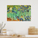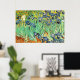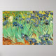 Mostre às pessoas seu estilo e refinamento com esta reprodução de uma bela obra de arte intitulada "Irrises", de Vincent van Gogh. Pintura de irises azuis crescendo em um campo. Pintado por volta de 1889