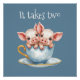 Cute "It takes Two" Teacup Piglets Design Poster featuring, two cute piglets in a teacup set on a plain powder blue / grey background.