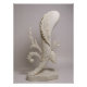 This image features an elegant white marble sculpture of the Ace of Bastone (clubs) adorned with intricate carved leaves and resting on a simple marble pedestal.