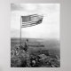 An American G.I. looks out over Iwo Jima from atop Mount Suribachi.