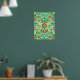 Poster em uma vintage William Morris jacoban padrão floral, melhorado digitalmente e colorido, em verde-folha, vermelho-carvão e azul-ceruliano, sobre fundo branco