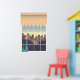 A janela falsa na forma de um poster é uma maneira excelente de iluminar a sala. É um decalque de estilos de desenho animado com "vista" da cidade.