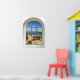 Vista do mar, cena de praia de janela curva falsa, para um escritório sem janelas. Poster de ilusão óptica de paisagem muito realista que pareceria excelente em um escritório ou uma parede de estudo.
