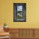 Castle Window olhando para Sand Beach Esta cena de uma praia arenosa franzida com árvores é uma de um par — pendura ambas estas fotos que se parecem com janelas na mesma parede para criar uma vista maravilhosa lá fora. A cena mostra o mar quebrando suavemente na areia, onde você pode ver pegadas ao longo da praia. A grama do mar e o gorso estão debaixo da janela de pedra que foi fotografada num verdadeiro castelo escocês. À distância, podem ver as escadas de pedra que alegadamente inspiraram "Os 39 Passos".