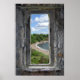 Pôster Janela Pedra que enquadra uma praia e árvores