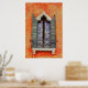 Poster com pintura de uma bela janela Renascentista italiana com vidro azul veneziano