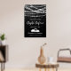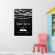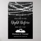 Jantar de Ensaios Bem-vindo à Noite Anterior Sinal - este design apresenta luzes de corda e estrelas em um fundo texturizado preto. E na parte inferior - Dois cisnes formando um coração.