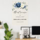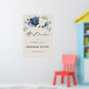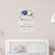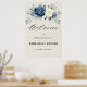 Poster de boas-vindas para ensaio floral azul-poeirento, jantado, com um buquê elegante de azul marinho, azul real, branco, marfim de champanhe, rosa de cor escamosa, botões de flores ranúculus e folhas de eucalipto verde-sábio e buquê de cor aquosa elegante. Entre em contato comigo para obter ajuda sobre a personalização ou se você precisar de outro produto com este design.