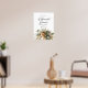 Bem-vindos aos seus convidados com um elegante sinal de boas-vindas do janto de ensaio, com delicada cor d'água verde, rosas, flores silvestres e detalhes dourados. Perfeito para adicionar um toque de classe ao seu janto de ensaio, este sinal garante boas-vindas quentes e na moda para todos os participantes. As cores do design de aquarela fazem deste design um jogo perfeito para qualquer estação.