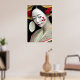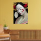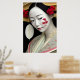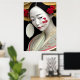 Poster Japonês Floral Geisha Red Dourado Fantasy Art Post