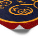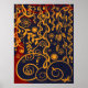 Uma paisagem abstrato de videiras gêmeas em ouro e ricas em vermelho sobre azul profundo, no estilo Art Nouveau. Essa peça original foi inspirada pelas formas e cores da obra do artista Gustav Klimt.