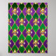 joias, fundo em Mardi Gras de losango roxo e verde, lírios de ouro decorados.