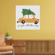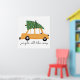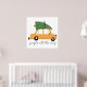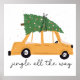 Esta design mostra um carregando de carro amarelo uma árvore de Natal amarrada ao telhado, cercada por flocos de neve caindo. O carro tem manchas de neve sobre ele, somando à confortável vibração do inverno. Abaixo do carro, a frase "jingle all way" está escrita em uma letra manuscrita divertida.