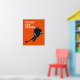 Design de hóquei no gelo com jogador e linha de motivação divertida no fundo laranja da equipe.
