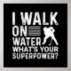 Poster do tema do hóquei com um jogador branco de hóquei em silhueta com bastão de hóquei e texto branco que lê I Walk On Water What's Your Superpower?