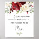 Poster Jogo de chá de noiva floral borgonha quantos beijo