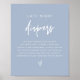 Este modelo de jogos do chá de fraldas do fralda, à noite, apresenta uma fonte boêmica escrita à mão e um design moderno minimalista, com uma combinação empoeirada de cor azul e branca. Use estas modelos para editar todos os textos, fontes, cores de fonte e a cor de fundo para corresponder ao seu estilo de evento. Seu design é o sinal perfeito para a mãe moderna.