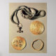 Joias de Viking TtoB LtoR: anel de prata e colar de prata com um pingente na forma de martelo de Thor; broche de ouro; anel de ouro torcido; broche de ouro localizado no Hamburger Kunsthalle, Hamburgo, Alemanha.