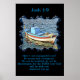 Poster Josh 1:9 with a old boat in the calm ocean.