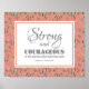Na moda CHRISTIAN POSTER com uma citação inspiradora que diz FORTE E CORAJOSA É A MULHER QUE MERECE O SENHOR, que é baseada em Joshua 1:9. O fundo é um padrão floral PEACH LUGHT com tipografia de CINZAS LUMINOSAS. Presente ideal para o aniversário, Natal, Dia de as mães e durante todo o ano. Outras cores disponíveis.